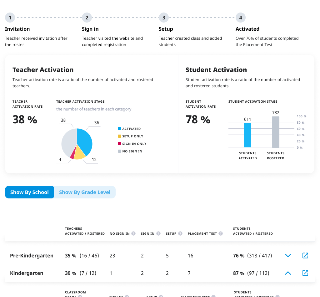 After launching our "solution," user interviews revealed an uncomfortable truth: admins couldn't understand what they were looking at. The metrics that made perfect sense to teachers—"target completion rates," "time spent on platform"—were meaningless to someone presenting to a school board.