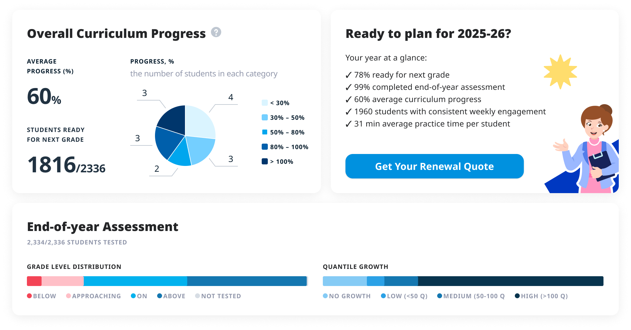Key Innovation: Instead of showing "lessons completed," we showed grade-level progression—a student might be in 3rd grade but working on 4th-grade material