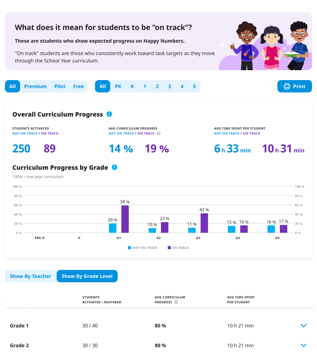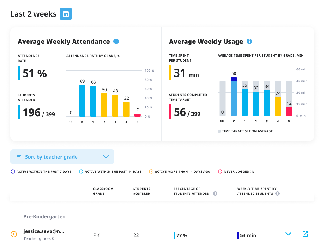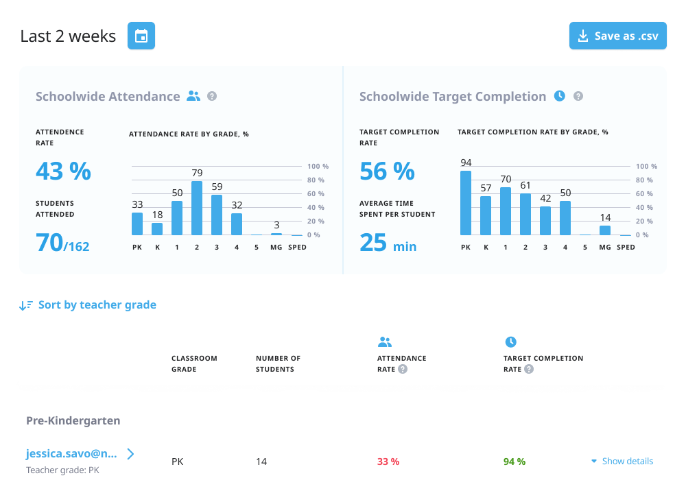 But when admins saw the district-wide version — '65% of students are completing daily targets with varying time spent' — they were lost. What's a target? Is it good or should they be worried?