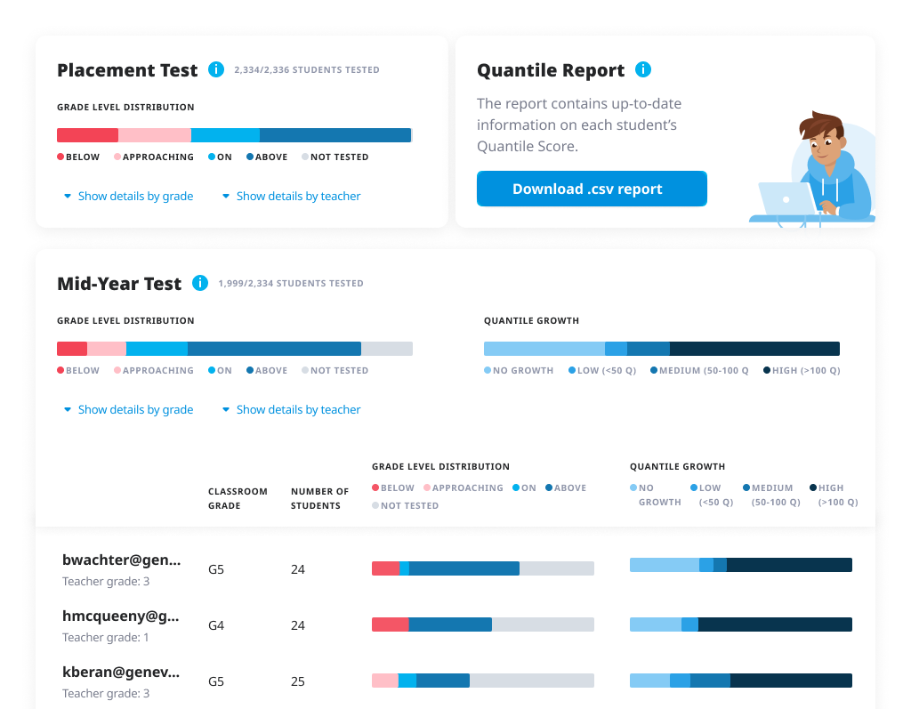 The Insight: This addressed the differentiated learning reality—students work at their own pace, but admins need to know if they're catching up or falling behind